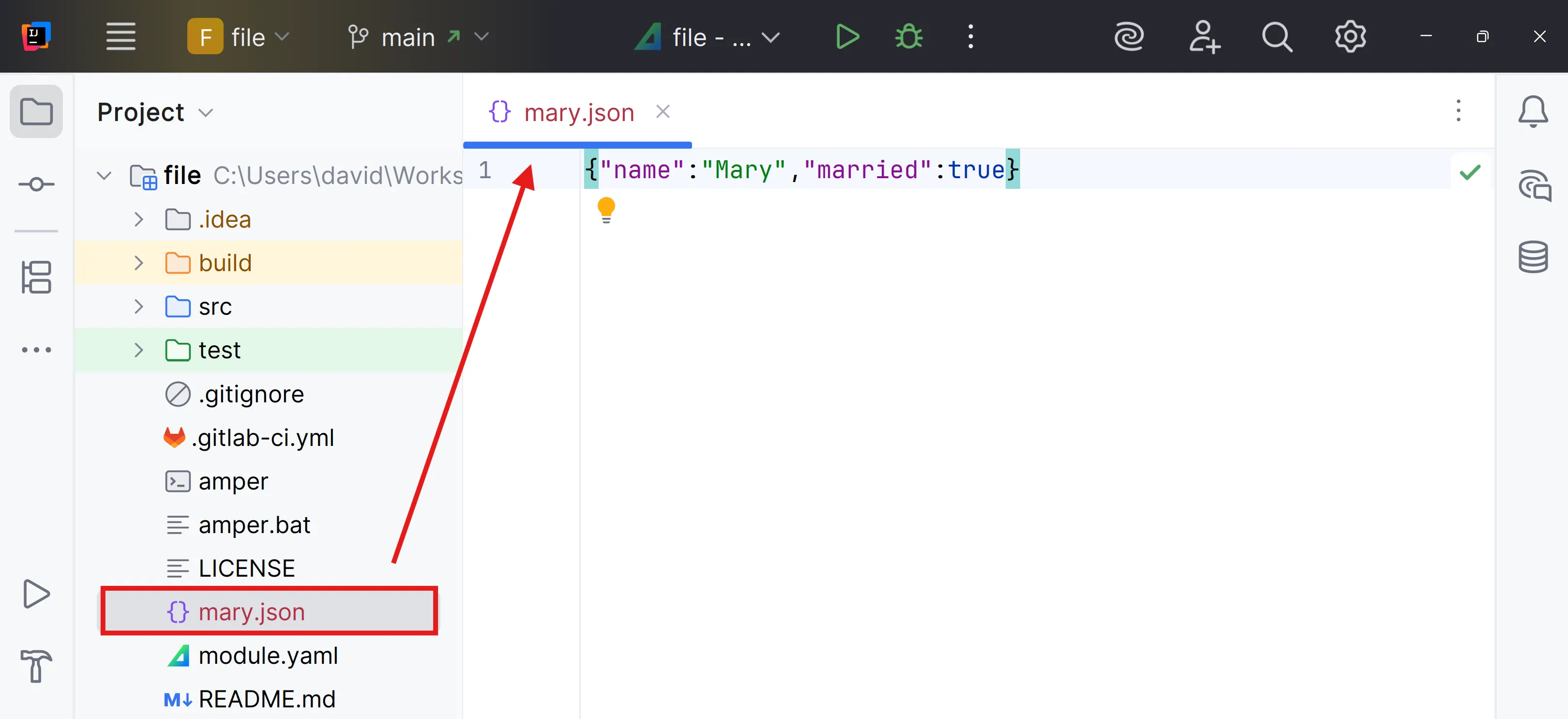 Per exemple, pots carregar en memòria el fitxer mary.json i convertir-lo en un objecte Person: