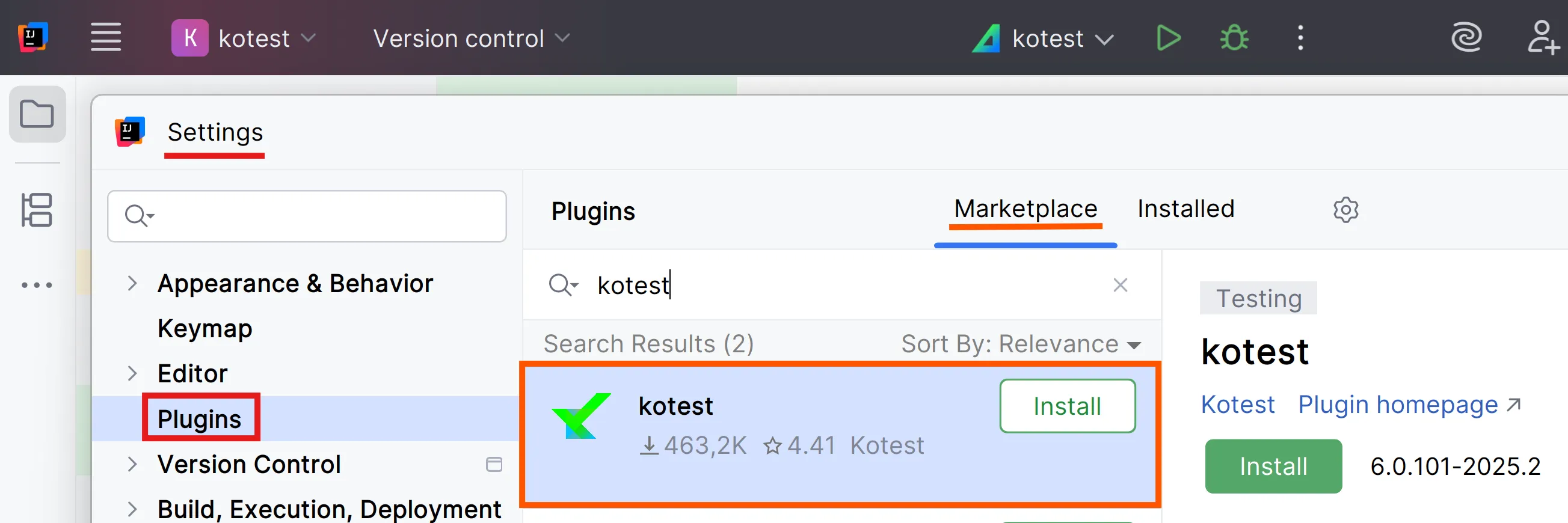 product: jvm/apptest-dependencies: - io.kotest:kotest-framework-engine:6.0.3 - io.kotest:kotest-runner-junit5:6.0.3 - $kotlin.reflect - org.jetbrains.kotlinx:kotlinx-coroutines-test:1.10.2Instal·la el plugin per Kotlin - Idea