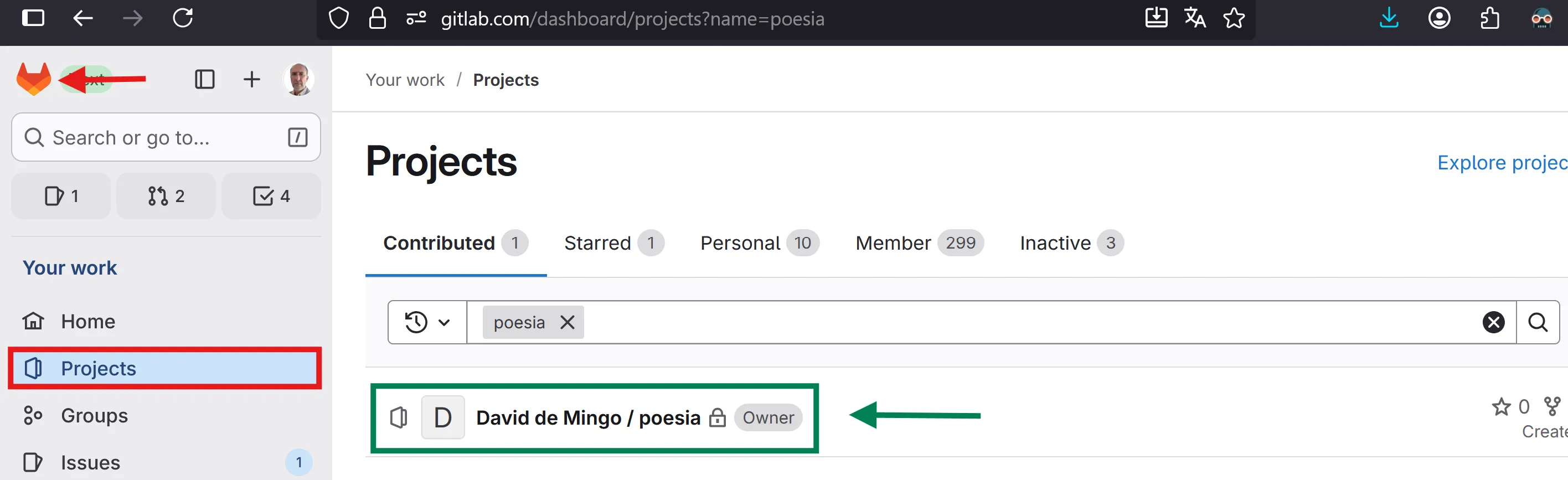 A GitLab un repositori forma part d’un projecte i no pot existir sense un projecte GitLab.