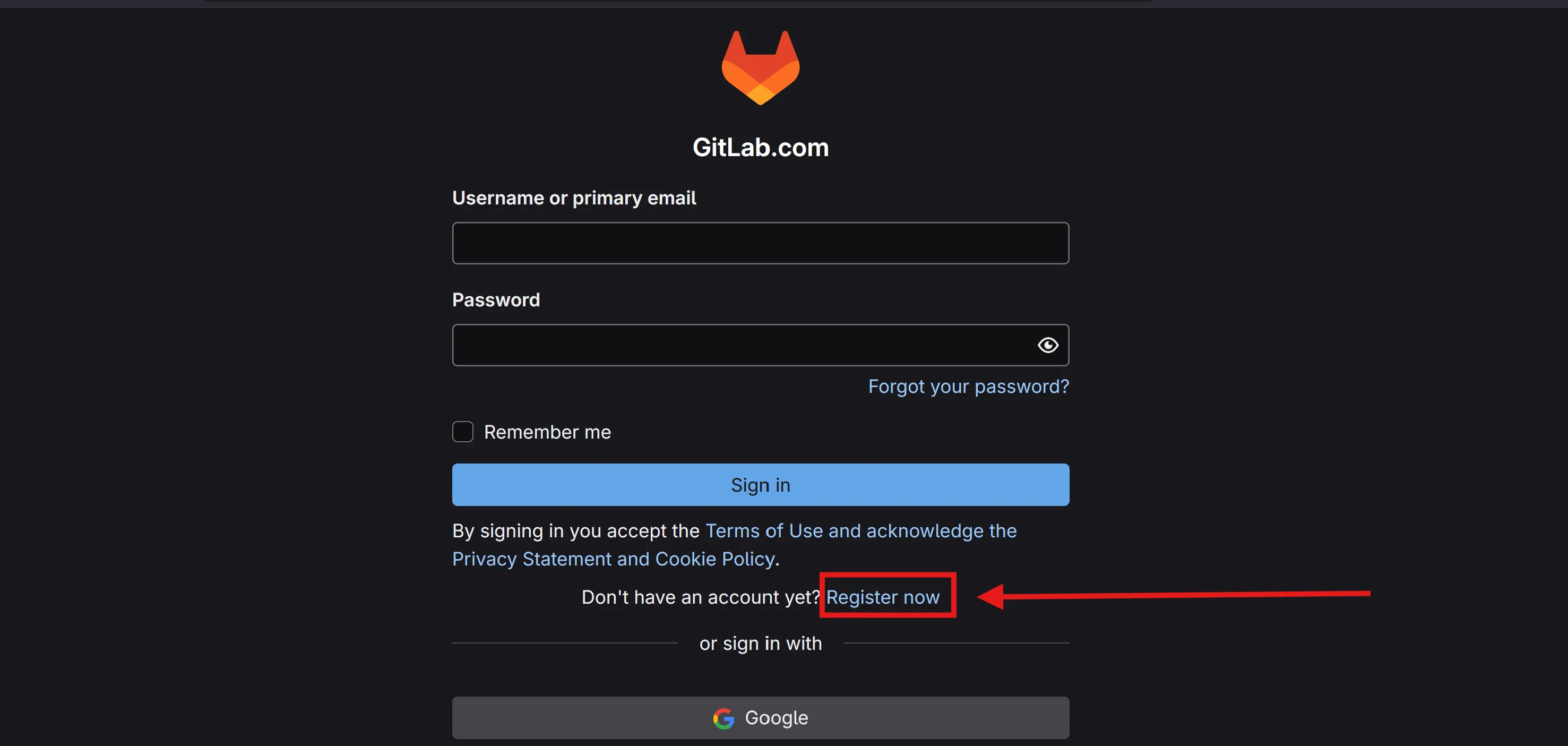 Si mai t’has registrat a Gitlab, el primer que has de fer és anar a aquest enllaç: Users - Sign In