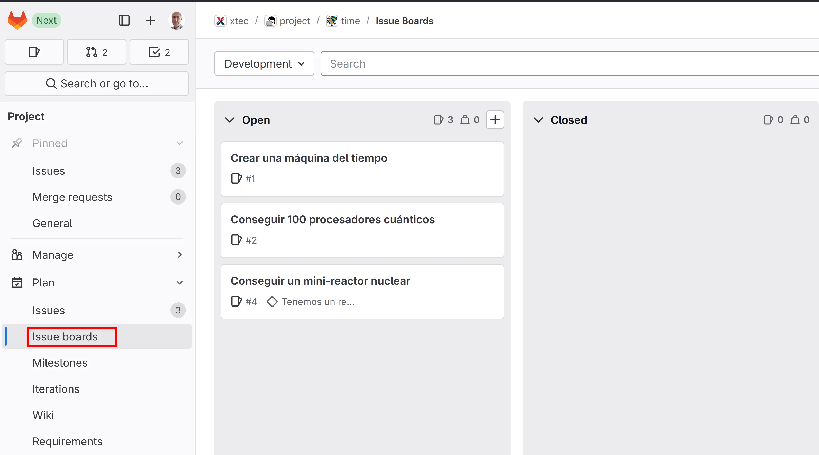 En aquesta activitat formativa farem servir el projecte TIME per aprendre els principis bàsics de Scrum: https://gitlab.com/xtec/project/time