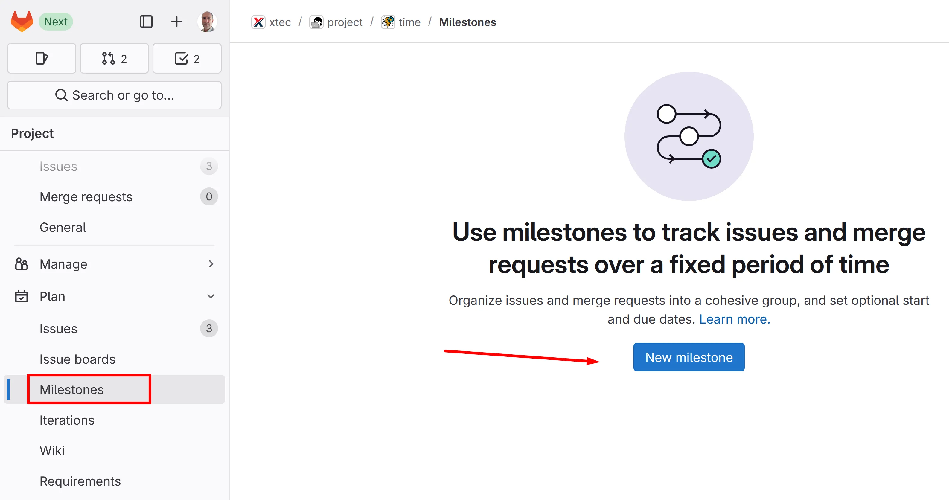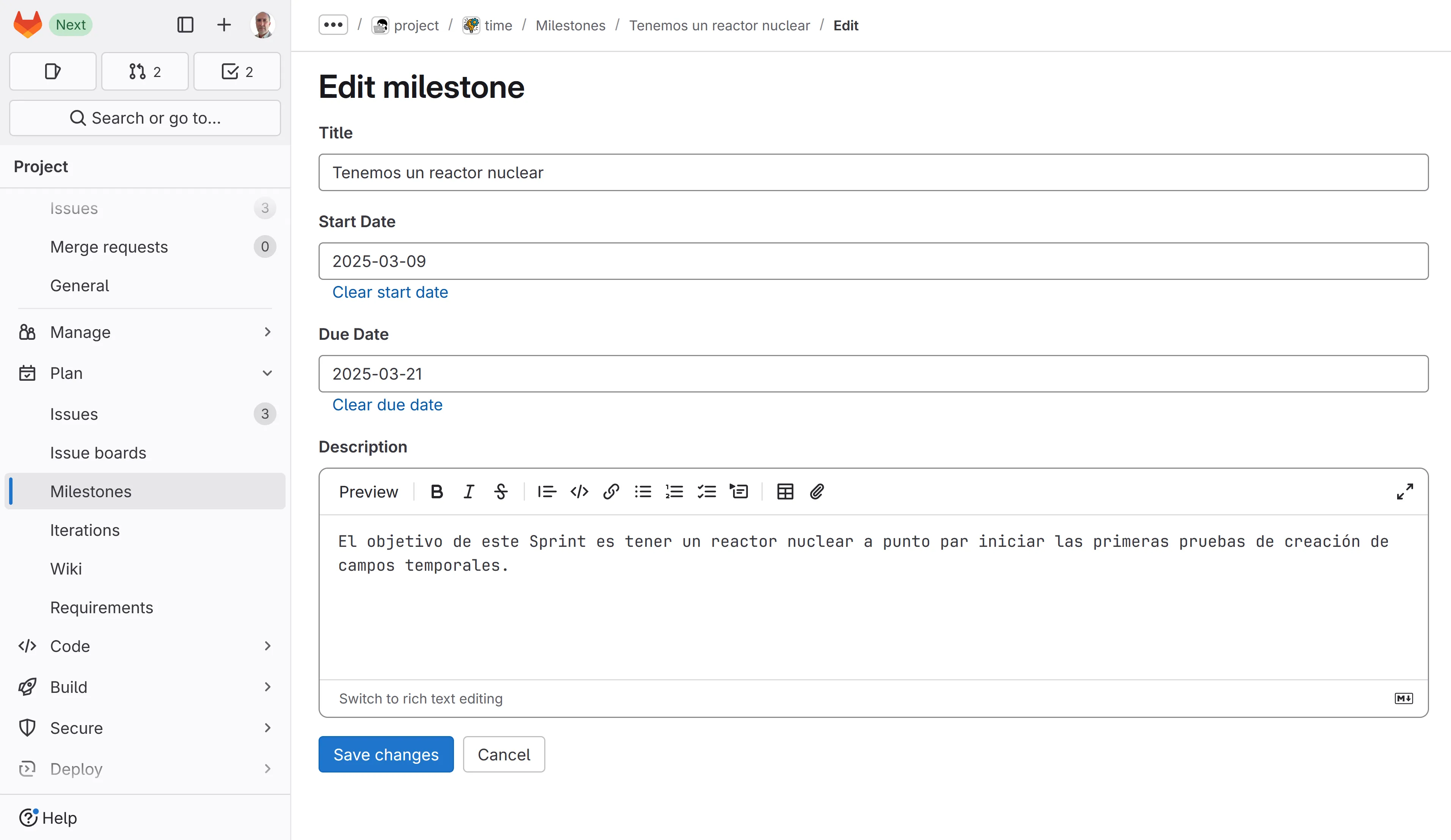 Crea un nou “milestone” (equival a un Sprint):