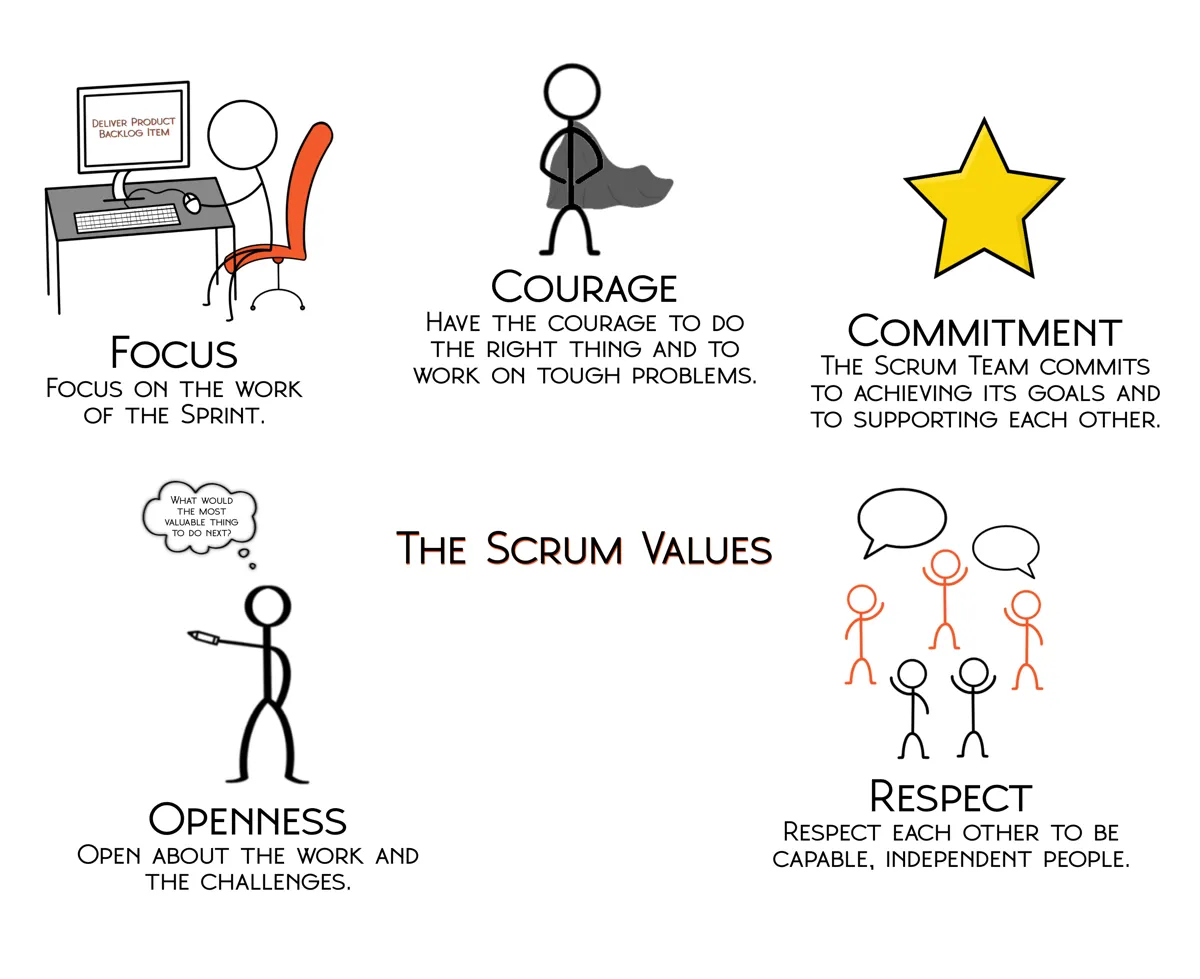 Scrum considera que tots els membres de l’equip han de respectar i creure en cinc valors fonamentals.
