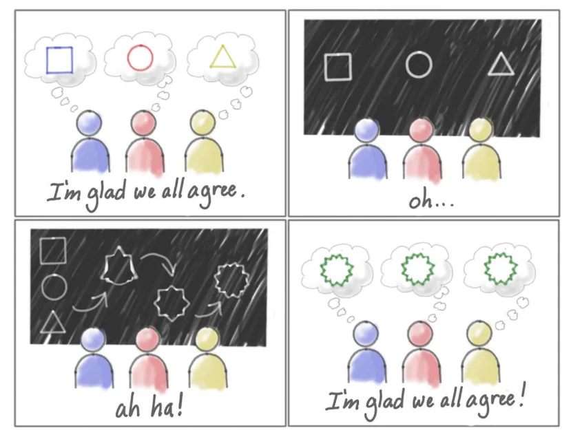 Si yo tengo una idea en la cabeza y escribo esta idea en un documento, cuando las personas leen este documento es muy probable que se imaginen algo distinto. Y si yo pregunto si todo el mundo está de acuerdo en lo que está escrito todo el mundo dirá que sí.