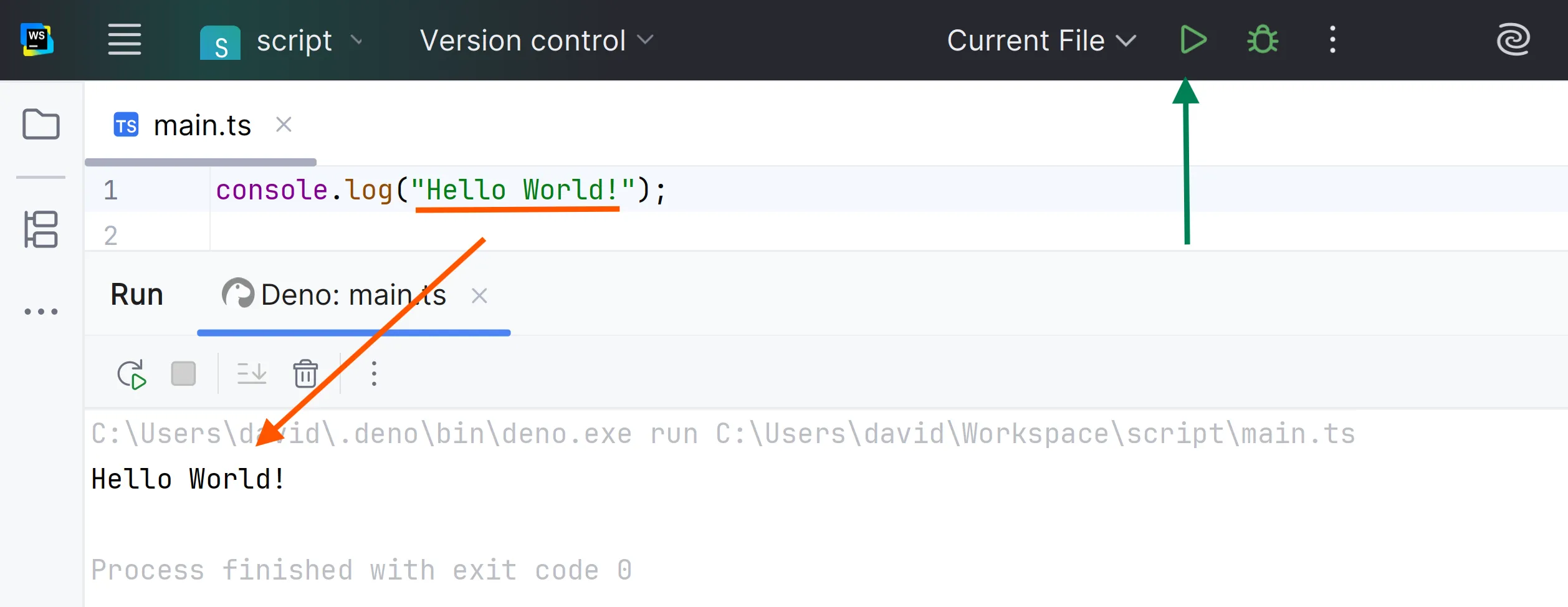 console.log("Hello World!")Obre un terminal i executa l’script: