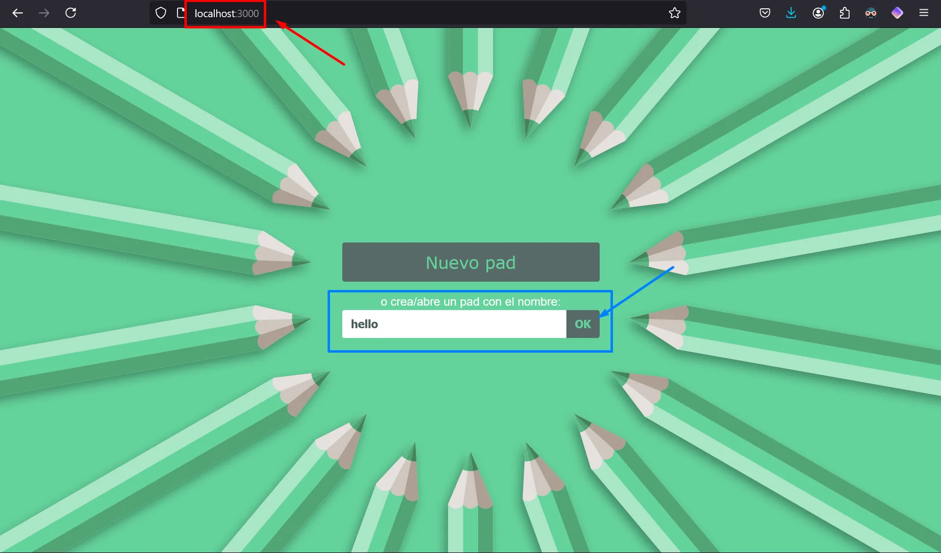 $ docker compose up -dObra el navegador a l’adreça http://localhost:3000 per connectar-te a Etherpad.