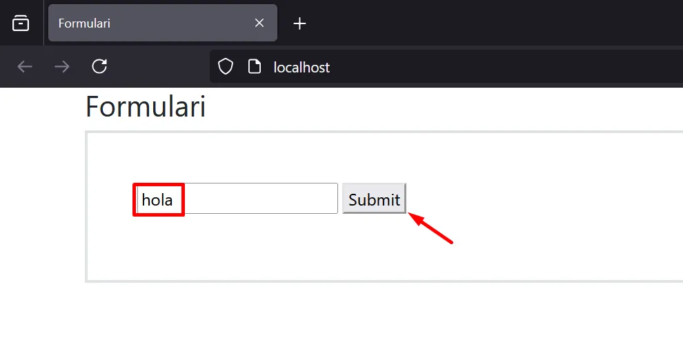 {% endpanel %}<form action="/form" method="POST"> <label>Nom</label> <input type="text" name="nom"/> <button type="submit">Envia</button></form>Però millor si associes el <label> amb l’<input>: afegeix un atribut id a l’element <input>, i un atribut for a l’element <label> amb la id de l’element <input>.