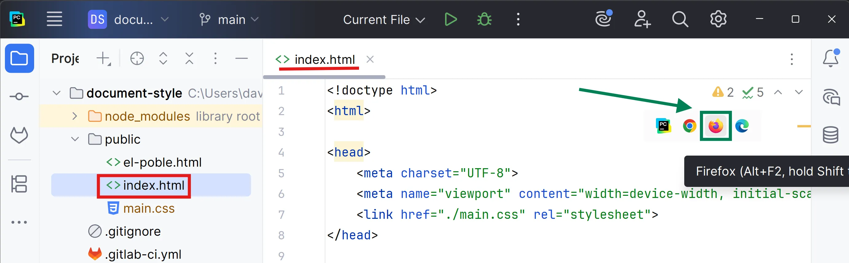 Obre el projecte amb WebStorm (o PyCharm).
