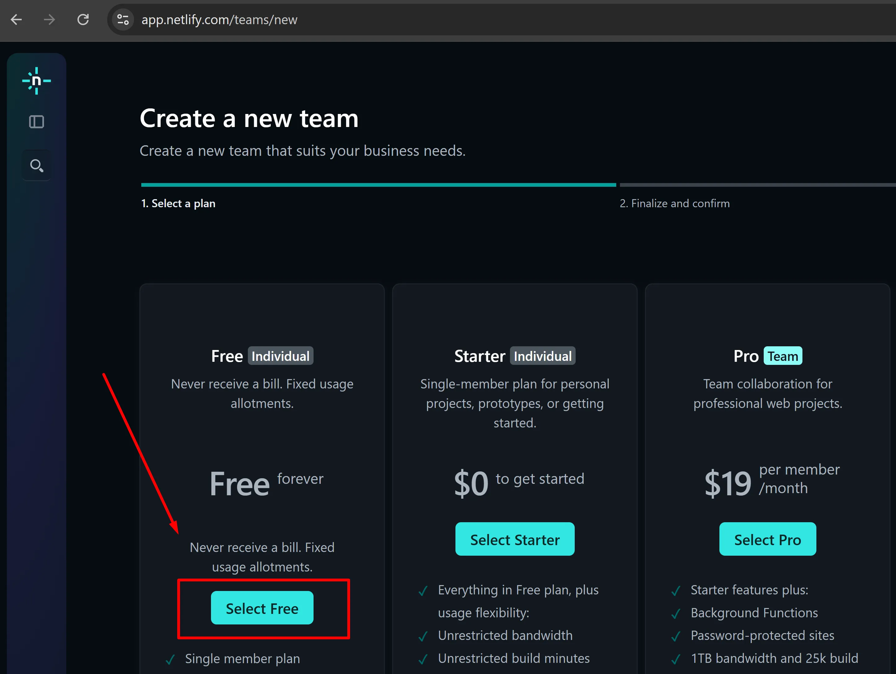 Si no estas registrat, Netlify et demanarà unes dades bàsiques per crear un compte.