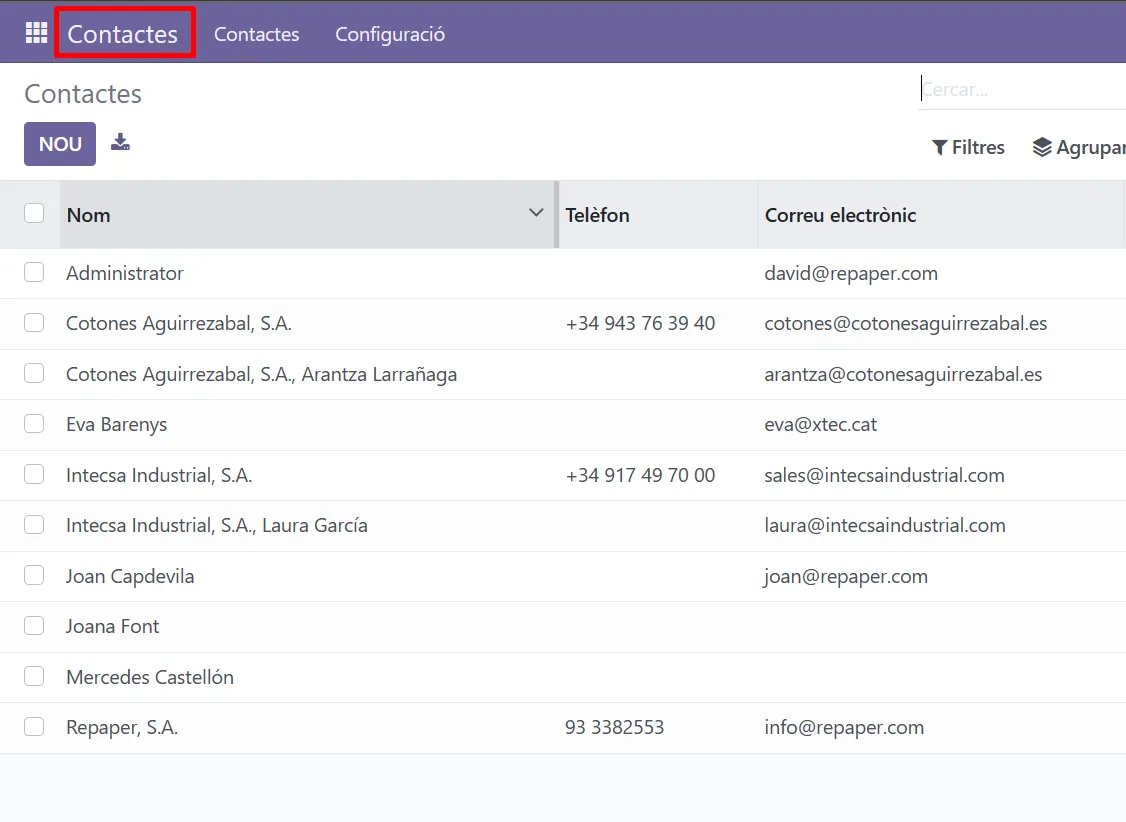 Se encuentran todos los contactos introducidos al ERP(clientes, proveedores, usuarios,..)