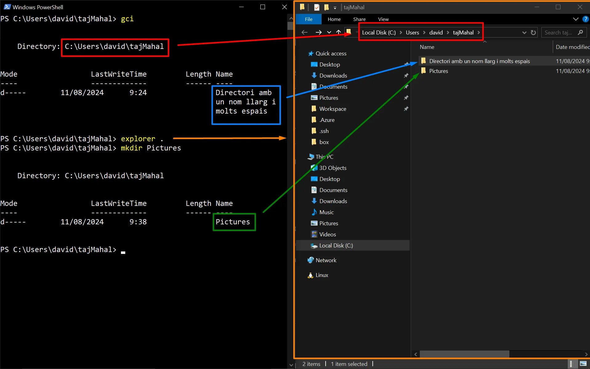 Pots veure que el que fas a PowerShell apareix a l’Explorador.