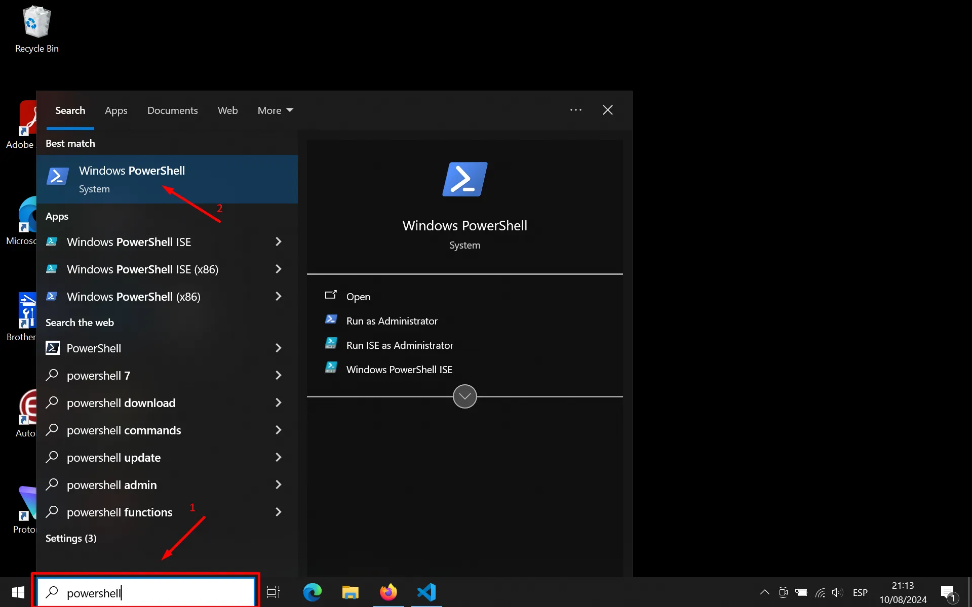 Pots veure que a més de Powershell tens altres opcions que no has d’escollir: